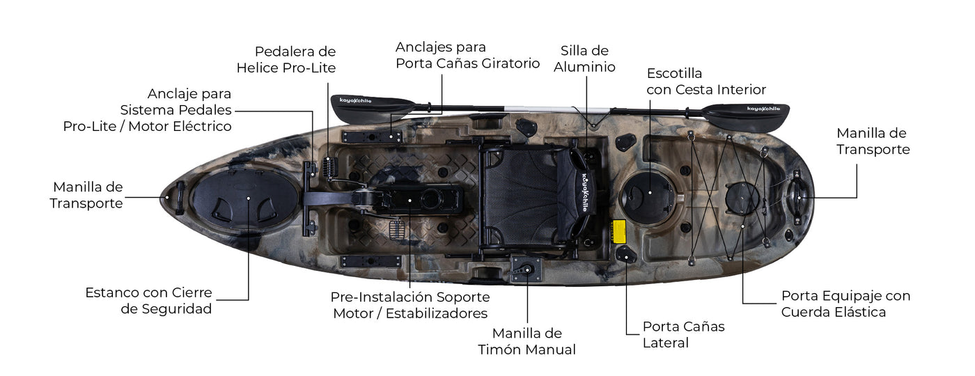 El Pedal Craft 10 es la primera generación de botes de pedales Propel. Con una longitud de 10 pies, este kayak se desplaza más rápido sin necesidad de usar las manos. Si deseas una experiencia sencilla en el agua, será tu elección perfecta. Puede adquirirse con un soporte de motor eléctrico, ideal para paseos de relajación y/o avistamiento de aves.