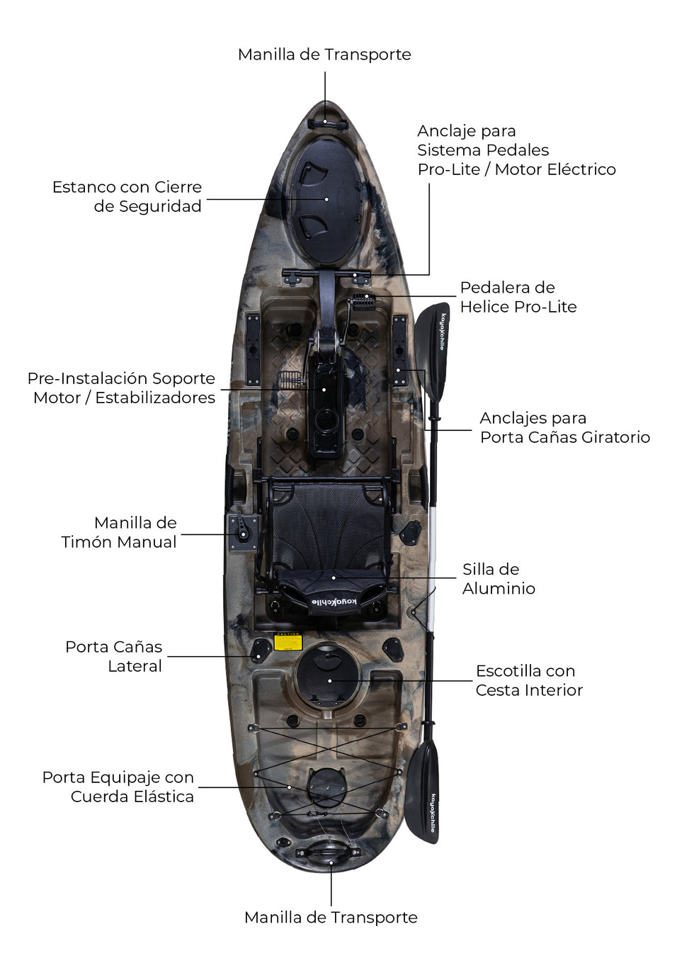 • Remo desmontable y ajustable 2.2 metros
